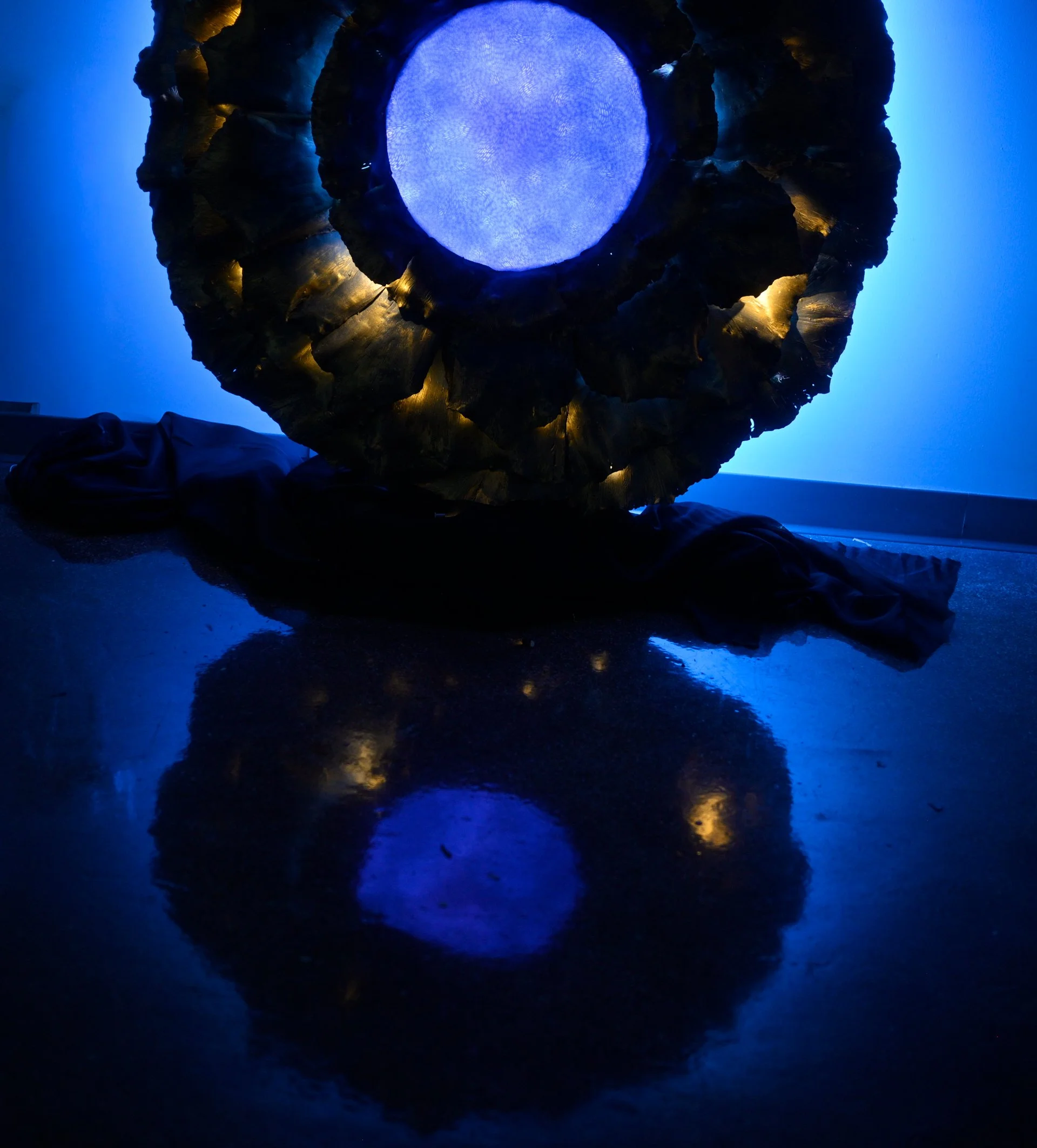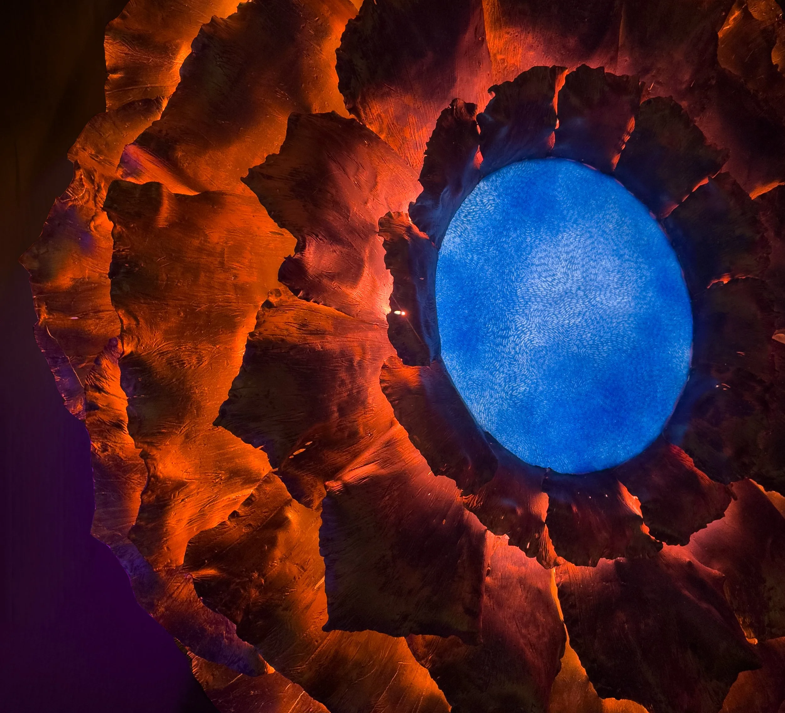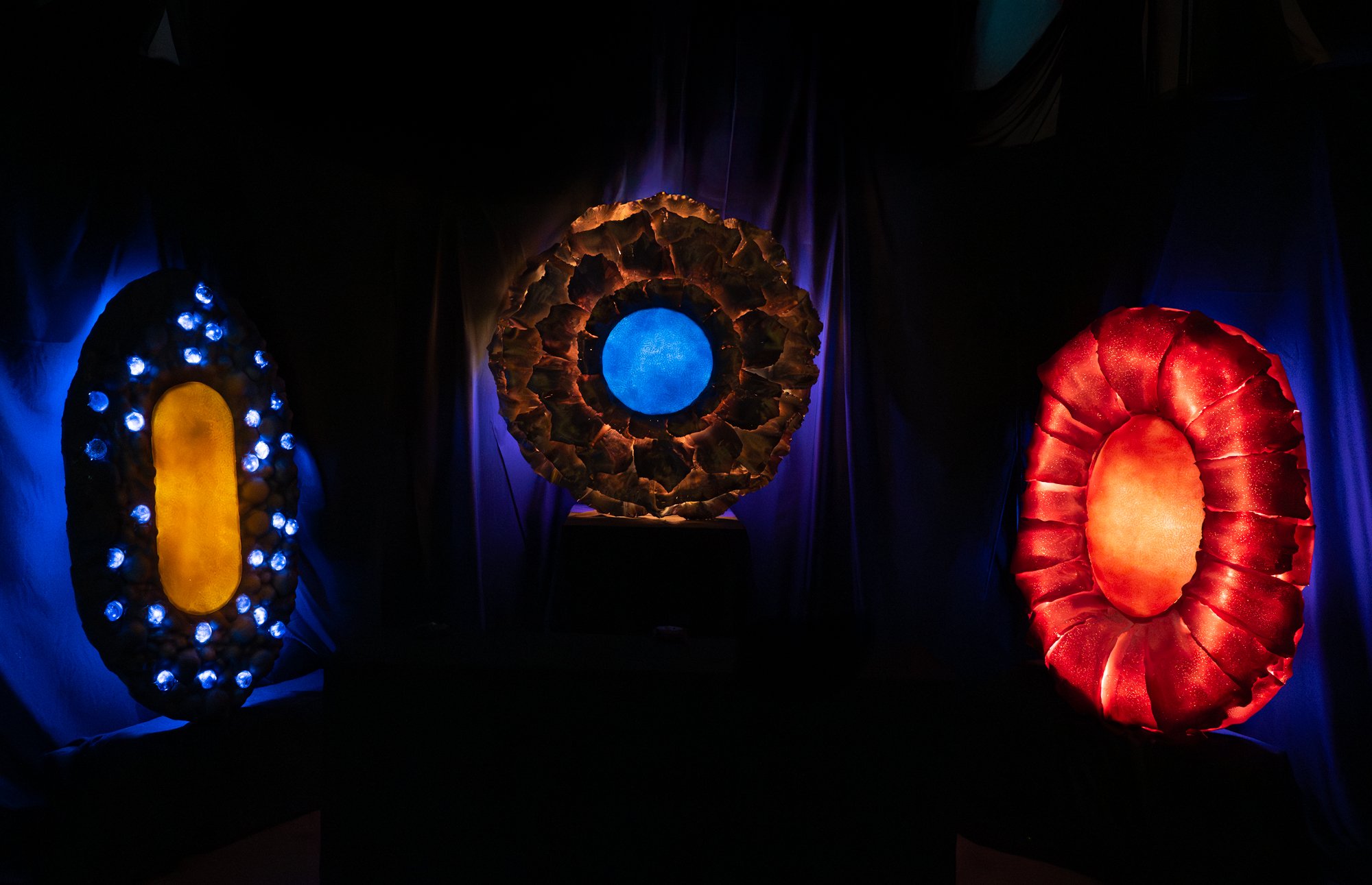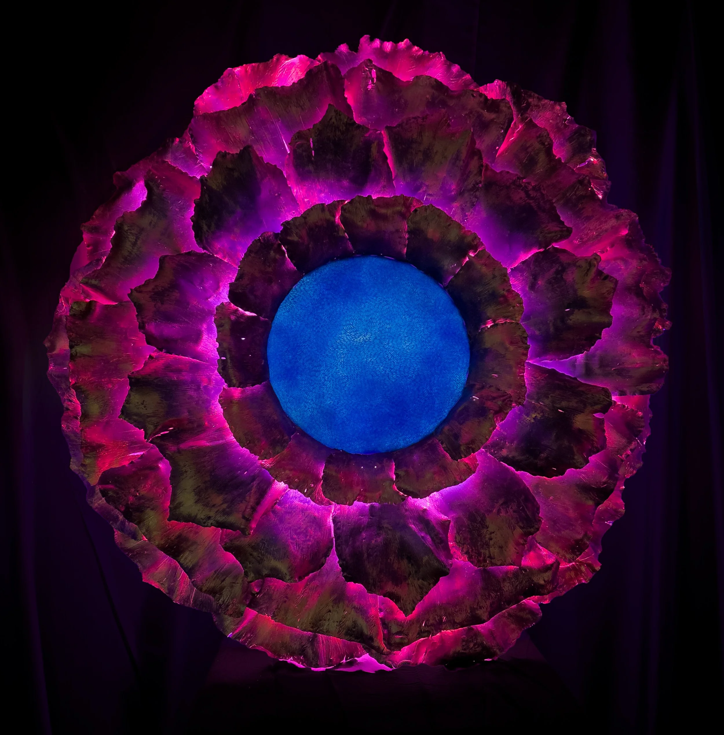 Each sculpture comes alive only when you connect with it through an oximeter, the same kind doctors use to measure your pulse. My intention is to reverse the usual relationship between viewer and artwork: instead of you putting effort into looking at art and hoping it stirs something in you, the art is hardwired to you: it responds directly to your breath, the most basic act of being alive. When you breathe near the sculpture, it breathes with you, turning your inhales and exhales into shifting colors in real time. You become one with the piece through this connection as you're literally breathing life into the art, animating it with your presence.